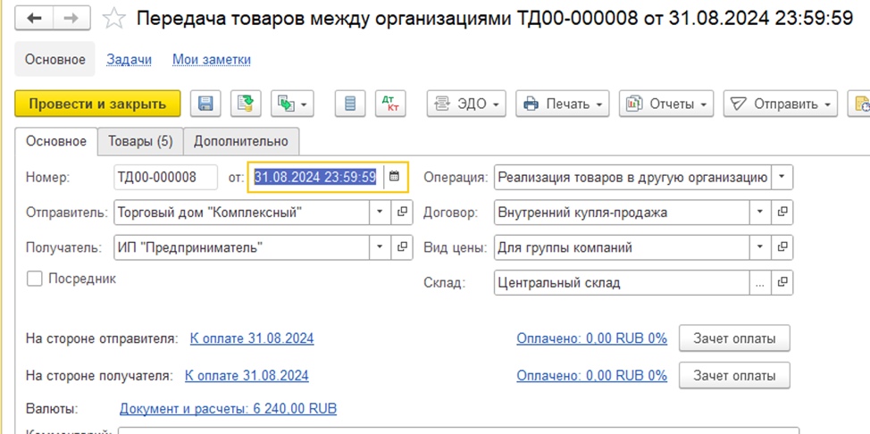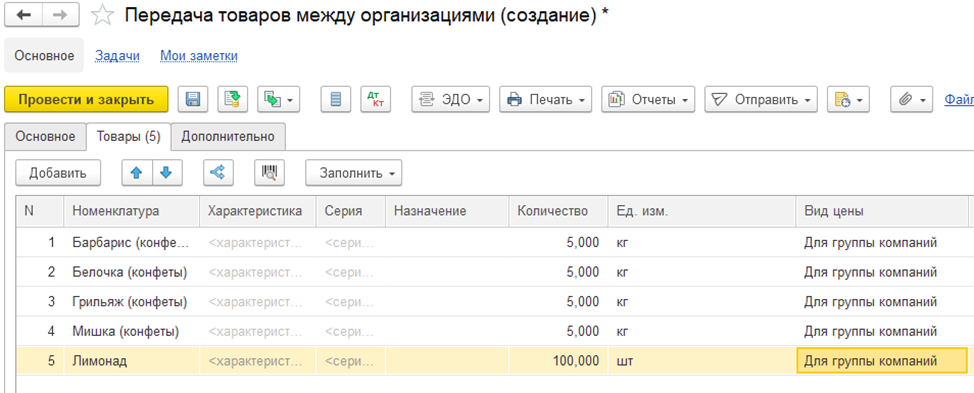 Передача товаров между организациями внутри группы компаний в 1С:КА, УТ, ERP